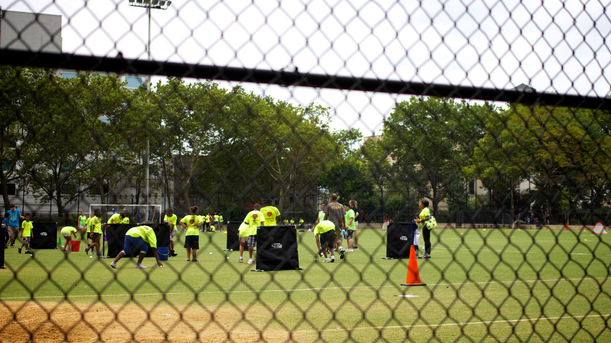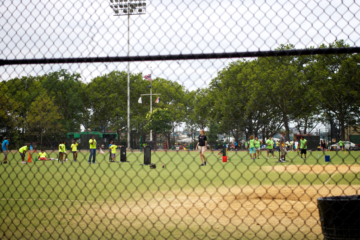 NYC Parks are running a “Kids in Motion” Sports and Fitness day today at DeWitt Clinton Park. The weather has been pretty average, but even so hundreds of kids have turned up for it.