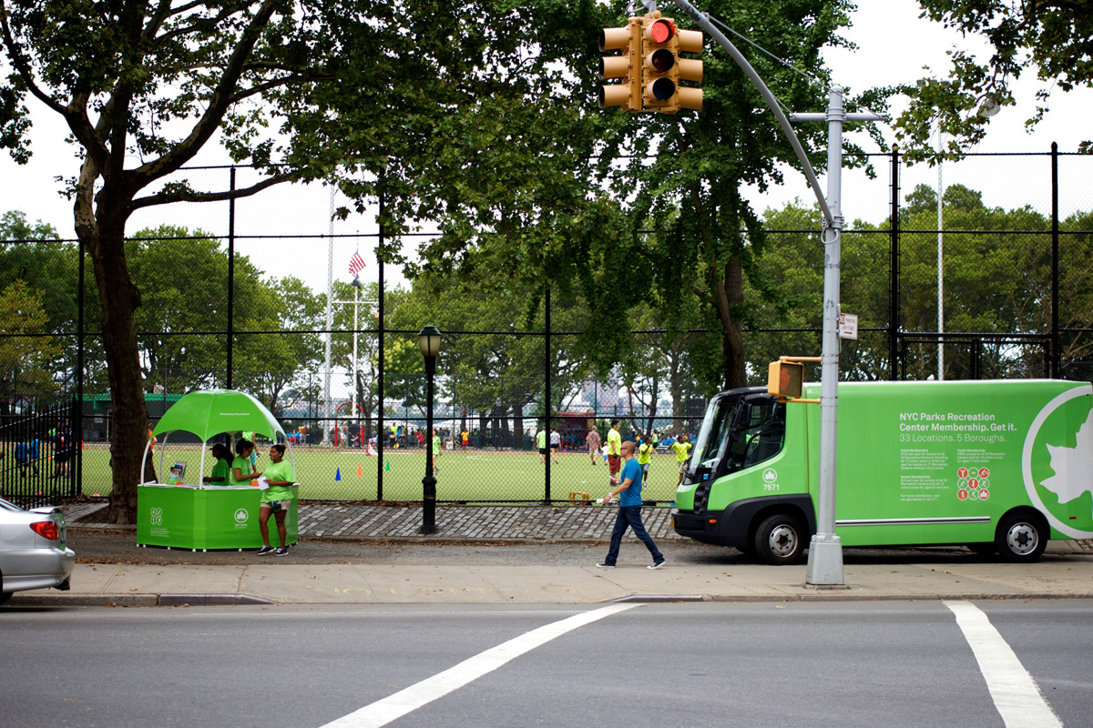 The parks department staff were also on hand, passing out flyers and free 1-day passes to the new rec center that opened last week on 60th St.