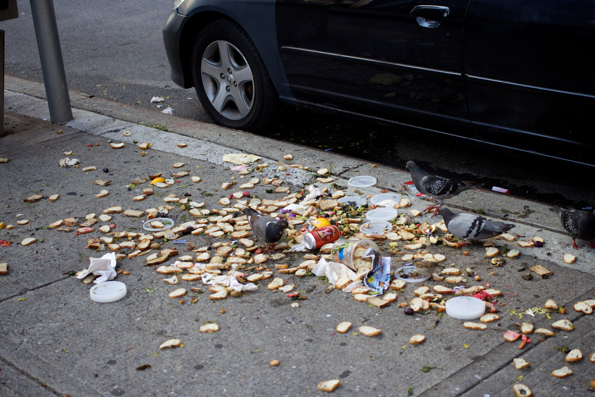 Literal Street Food 3 August 2013 11:00pm Spotted this on 10th Ave at 53rd St. It looks like some kind of bruschetta explosion. I’m sure they were just looking out for the pigeons.