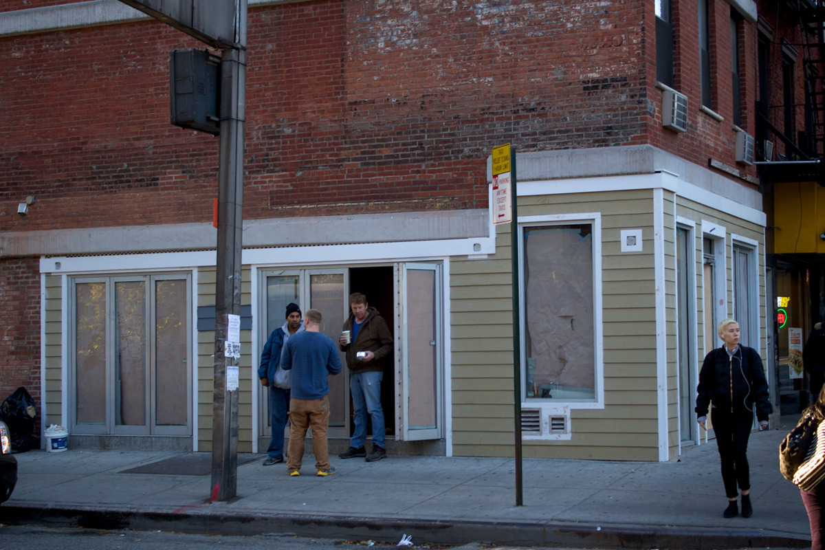 Well, we’ve been watching the progress at the incoming Snack Taverna and saw as the checkerboard tiles were slowly chipped away at, and now it’s finally happened: they’re gone.