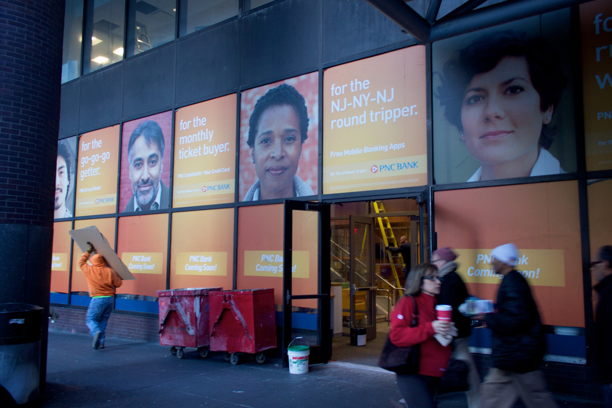 Because we don’t have enough already, turns out there’s a branch of PNC Bank taking over the pretty-​massive store on the 8th Ave side of the Port Authority Bus Terminal. Haven’t noticed until now because that strip is the worst for trying to walk through, so it’s already well underway.