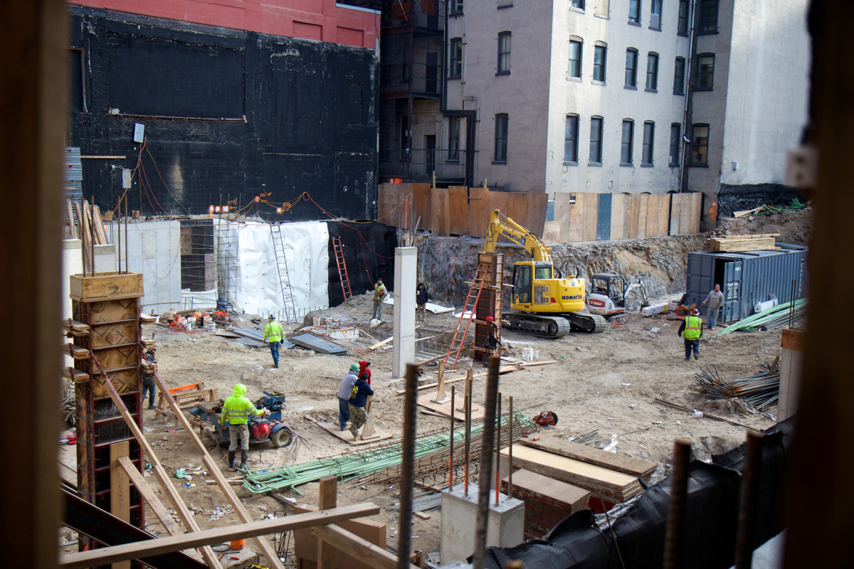 Not wasting any time, the sales center is set up just around the corner from the construction site on 10th Ave, so you can head in to find out more about this exctng dvlpmnt.