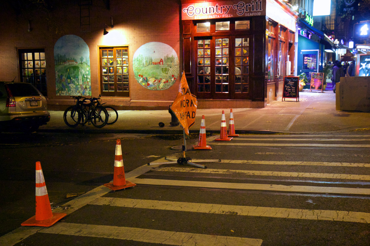 While checking out the new Totto Ramen tonight, we heard water was out around W 53rd. Turns out that a water main broke, taking out water to that whole street (and maybe others?).