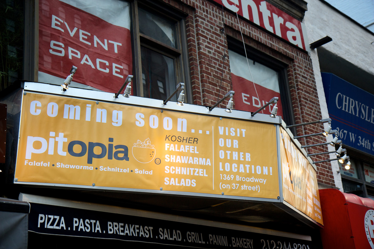 The falafel and shawarma bar Pitopia are opening up a second store on the corner of 34th St and 9th Ave, opposite B&H. The new store isn’t too far from their current store at 37th & Broadway, and will have all the same menu items as the original, as well as the bar-style layout. The spot couldn’t be any more perfect for them given the hundreds of kosher-keeping employees of B&H, plus the West Side Jewish Center the next building over.