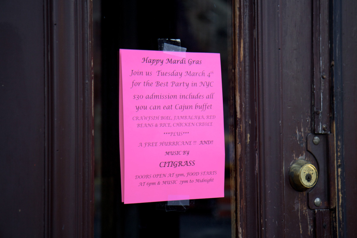 First up we have signs up for a Mardi Gras party at Delta Grill. It’s in two weeks or so, so that makes sense…