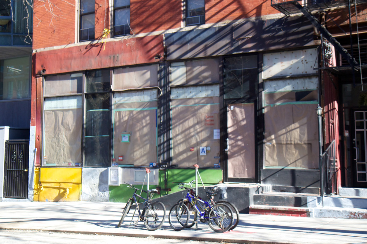 A quick progress update on the incoming outpost of the Chelsea Vietnamese restaurant Co Ba, coming to W 53rd St (previously). Over the past week or so, they’ve pulled down the old tenant’s awning and lights, leaving a very different, bare storefront: