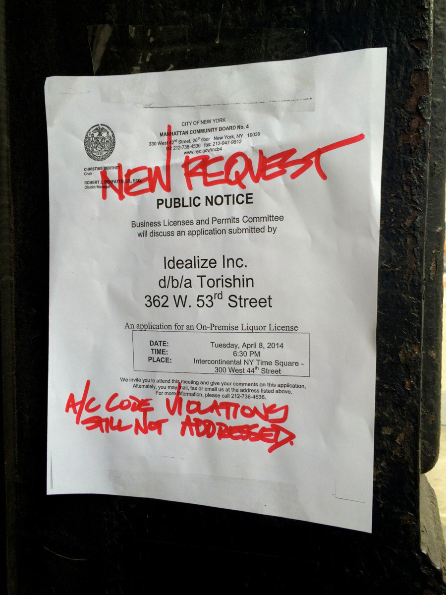 A few months ago Clubhouse BBQ was planning on opening in the space, but ran into strong resistance from the neighbors for planning on using the courtyard space that’s part of the store (so unreasonable). They ended up backing down from using any outdoor space, but eventually faded away… Now Torishin is having a go, and right on cue the NIMBYs “concerned neighbors” have begun their campaign: