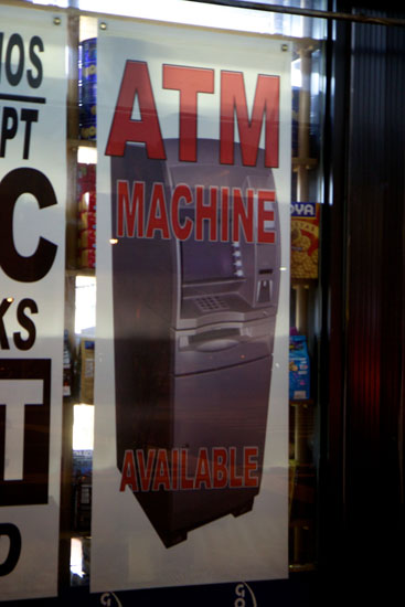 “ATM machine”, on the window of the deli at 36th & 9th: