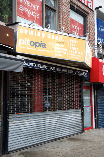 The falafel and shawarma bar Pitopia are opening up a second store on the corner of 34th St and 9th Ave, opposite B&H. The new store isn’t too far from their current store at 37th & Broadway, and will have all the same menu items as the original, as well as the bar-style layout. The spot couldn’t be any more perfect for them given the hundreds of kosher-keeping employees of B&H, plus the West Side Jewish Center the next building over.